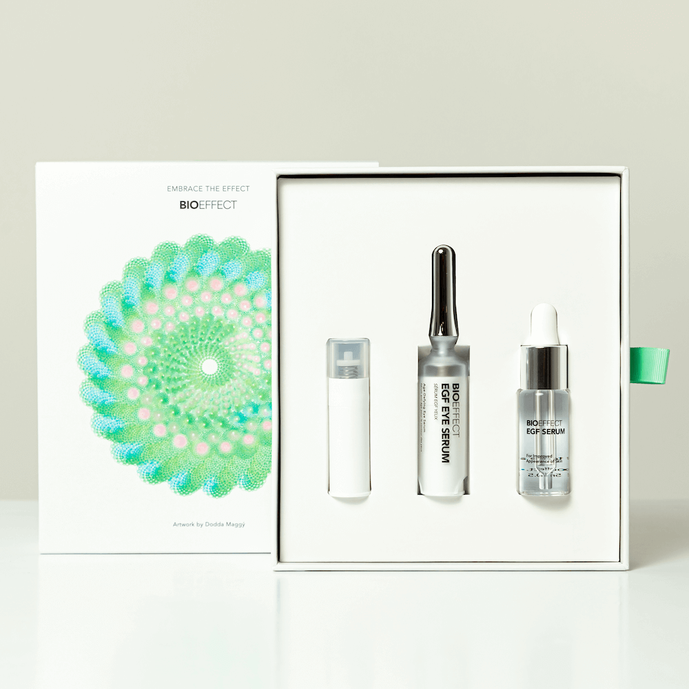 Ce coffret exclusif comprend deux soins classiques de votre routine visage : le Sérum EGF et le Sérum EGF Contour des Yeux en format original + une recharge 6ml du Sérum EGF Contour des yeux et offre une économie de 22% ! Ces soins BIOEFFECT forment le duo idéal pour hydrater intensément votre peau, prévenir et cibler les signes du vieillissement cutané, améliorer l'éclat du teint tout en apportant un soin particulier à la zone sensible du contour de l'oeil en ciblant les rides, pattes d'oie et apparence des cernes.