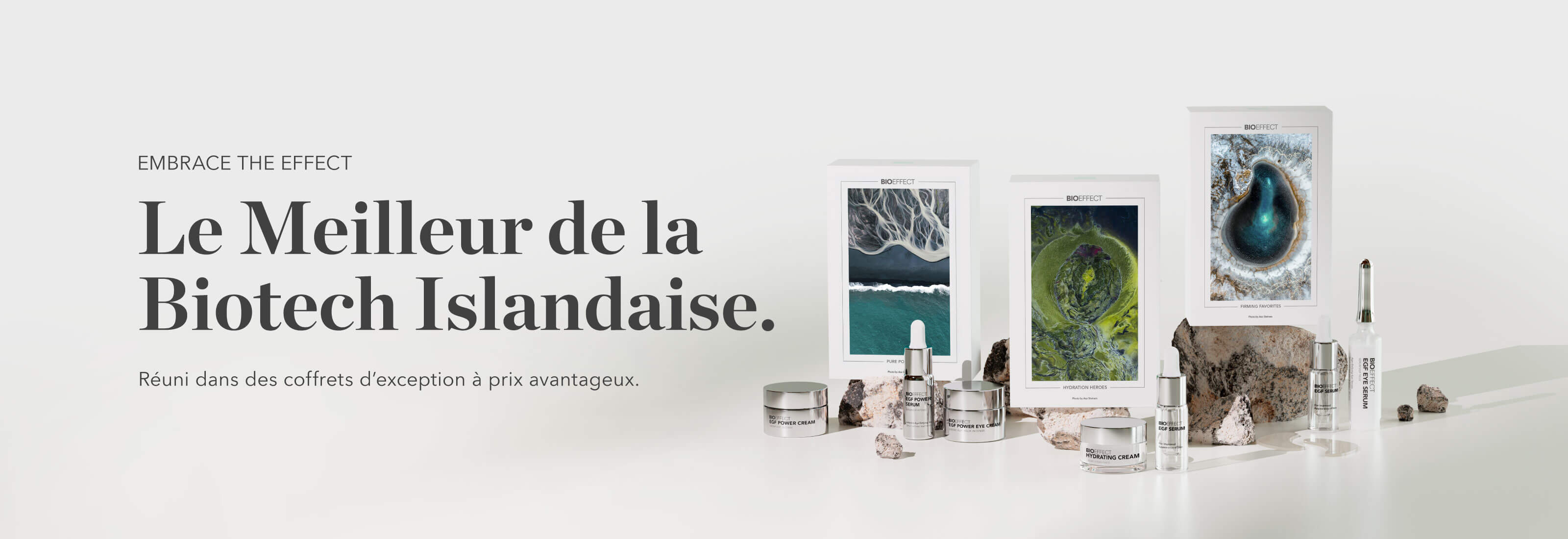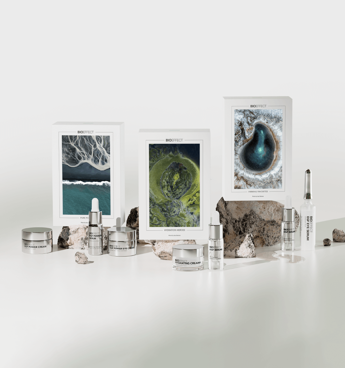 Cette année, dans le cadre d’une collaboration exclusive avec BIOEFFECT, les coffrets cadeaux s’ornent de ses clichés emblématiques. Chaque set rend hommage à la nature intacte de l’Islande et incarne ce qui nous définit : Pure. Green. Clean.