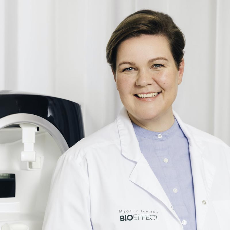 Sigrún Dögg est la directrice en recherche et développement chez BIOEFFECT. Elle supervise les essais cliniques des produits sur la peau, tout en développant notre gamme de soins. Suite à l'obtention de son B.Sc en Islande, c'est à Copenhague qu'elle a poursuivi avec un M.D. Sigrún a travaillé en dermatologie et a été également spécialiste médicale dans le développement clinique de médicaments.